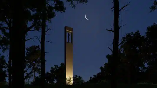 Caminin ormanda varlığı, dikey beton minare ile öne çıkıyor. Minare, ormanın yatay dokusu içinde düşey yönlendirici öğe olarak camiye ulaşımı kolaylaştırıyor. Minare formu ise, doğanın organik hatları arasında sessiz varlığını farkettiriyor. Green Mosque’un geniş ön avlusu, hava koşulları elverdiğinde orman atmosferinde toplu ibadet yapma imkanı tanıyor. Böylece, doğayla iç içe ibadet imkanı sağlıyor.